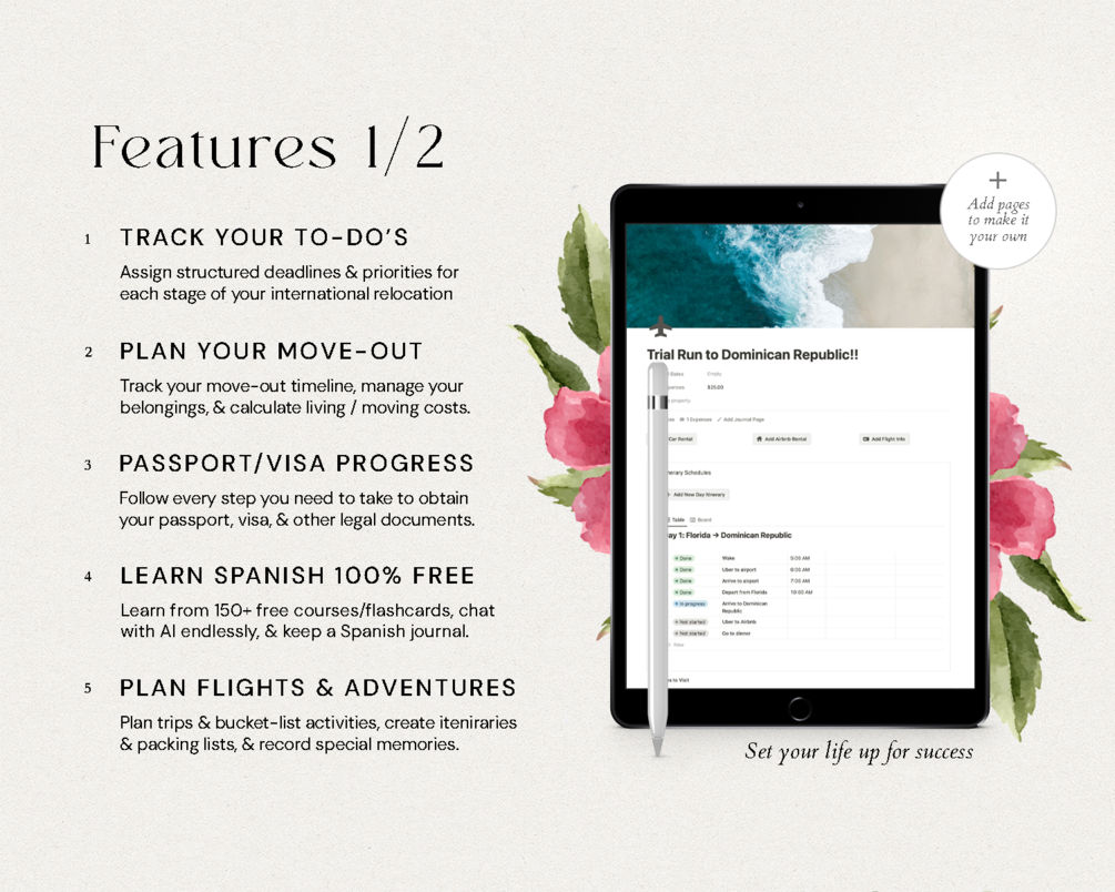 Simplify the challenges of moving abroad with a comprehensive solution designed to keep you organized and stress-free. Packed with powerful features and smart automations, this ultimate tool ensures a seamless and efficient relocation experience from start to finish.